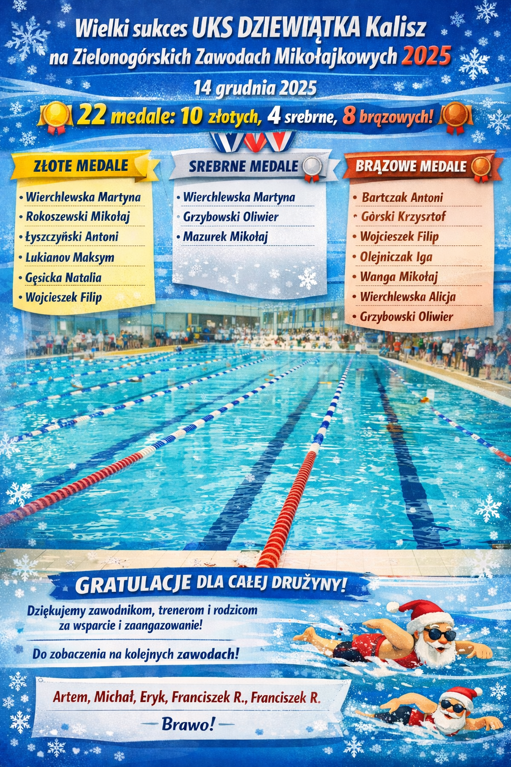 24 stycznia 2026 roku zawodnicy UKS „Dziewiątka” Kalisz wzięli udział w trzeciej rundzie Otwartych Mini Grand Prix Opolszczyzny w Pływaniu – cyklu zawodów o wysokim poziomie sportowym, gromadzącego czołowych młodych pływaków z regionu i kraju.