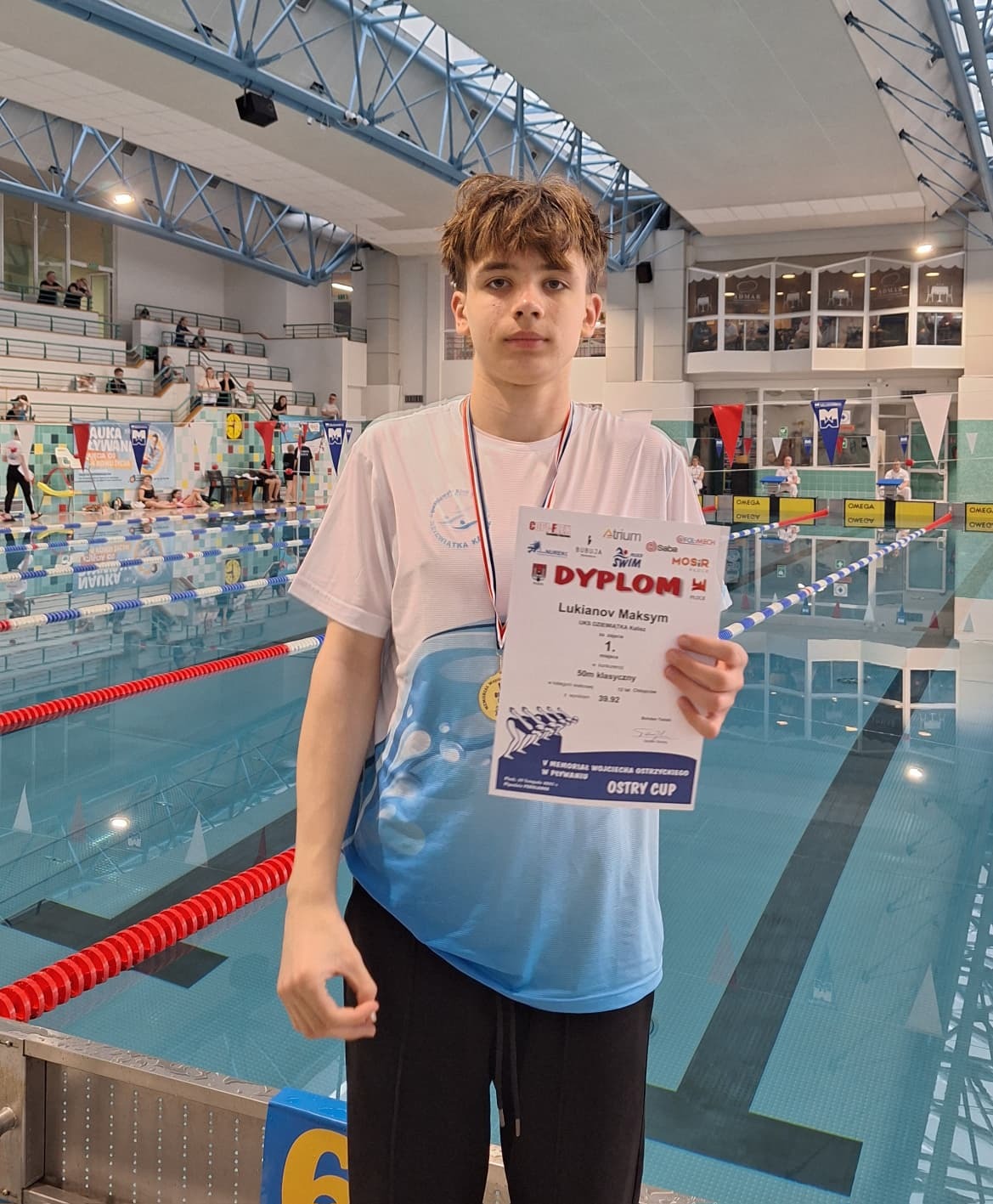 • Maksym Lukianov – 100 m stylem klasycznym (1:24,81) – kategoria 13 lat